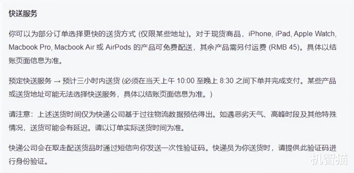 近日,苹果官网显示,苹果已在中国大陆地区正式上线“三小时快送”服务。